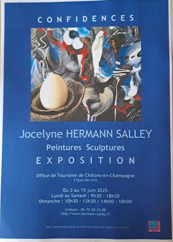 Après son exposition au nouveau restaurant Le Palladium de Romilly-sur-Seine, Jocelyne exposera certaines de ses oeuvres à l'Office de Tourisme de Chalons-en-Champagne durant la première quinzaine de Juin.